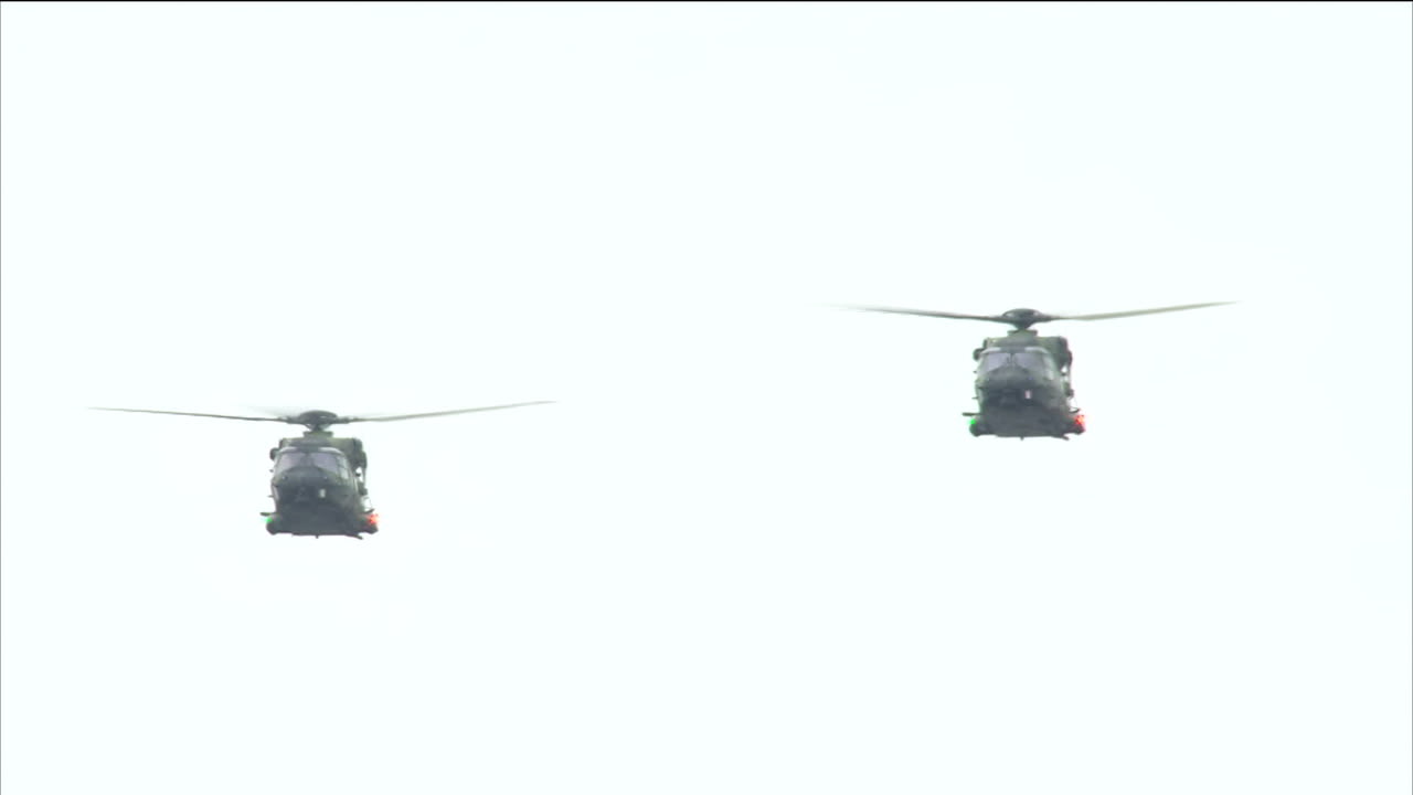 Itsenäisyyspäivän paraati huipentui ylilentoihin Helikopterit lentivät marssin yllä.45 s Käynnistä ohjelma