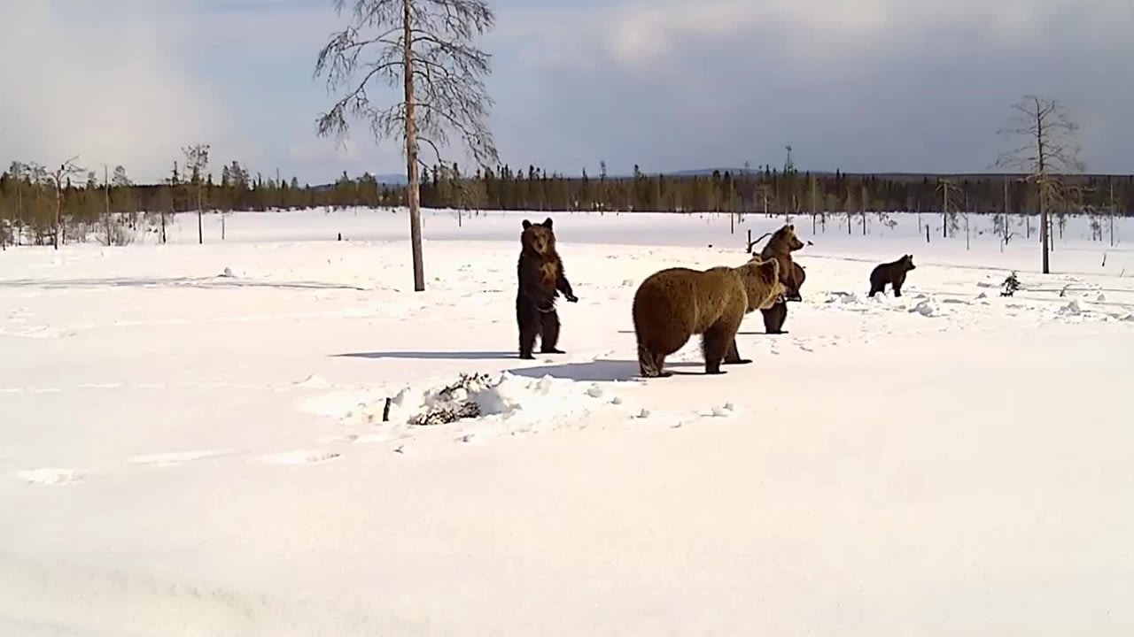 Karhuemo toi neljä pentuaan vappulounaalle Karhut ovat heränneet talviuniltaan Koillismaalla huhtikuun puolivälissä. Vappuviikolla Kuusamossa karhuemo esitteli peräti neljää pentuaan kameralle ja vielä kahdella eri karhunkatselupaikalla.19 s Käynnistä ohjelma