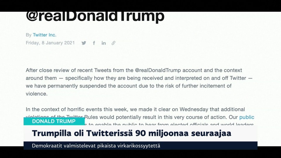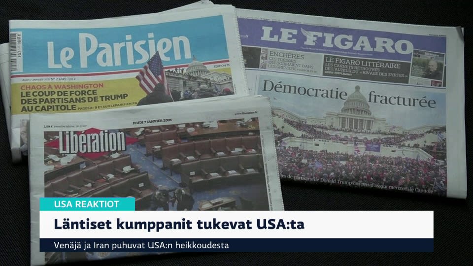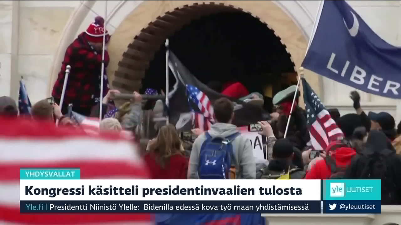 Yle Uutiset Erikoislähetys: Yhdysvaltain tilanteesta Washingtonin mellakoista ja Yhdysvaltain vallanvaihdon tilanteesta. Lähetyksessä otetaan yhteys suorana Washingtoniin kirjeenvaihtaja Iida Tikkaan.29 min Käynnistä ohjelma